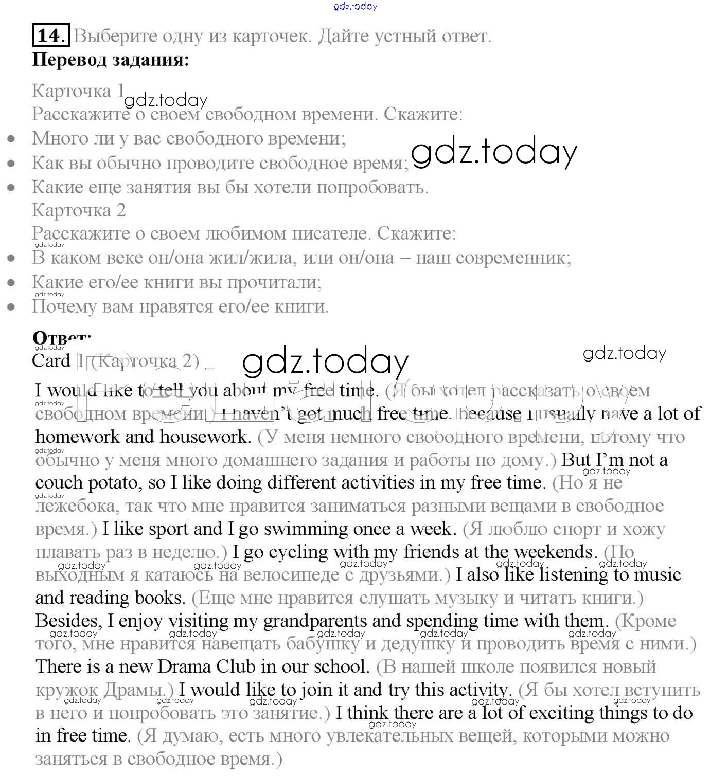 На страницах сайта gdz.today вы найдете учебный и вспомогательный материал, направленный на улучшения знаний школьной программы. ГДЗ - онлайн мир знаний Progress check Unit 3 14 Учебнику по Английскому языку для 6 класса Биболетова, Денисенко Титул, Дрофа Enjoy English 2015, 2019