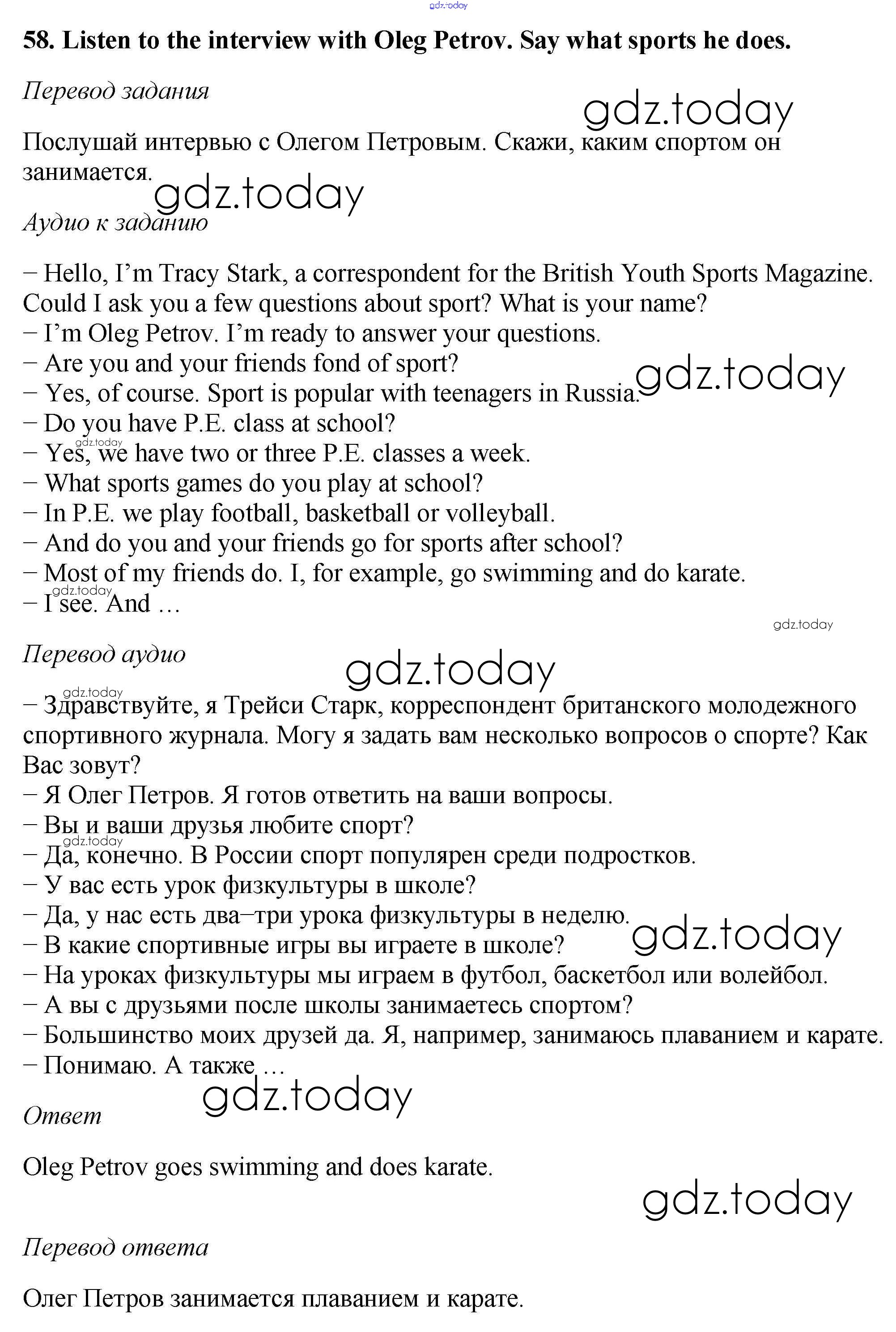 На страницах сайта gdz.today вы найдете учебный и вспомогательный материал, направленный на улучшения знаний школьной программы. ГДЗ - онлайн мир знаний Exercises Unit 4 58 Учебнику по Английскому языку для 6 класса Биболетова, Денисенко Титул, Дрофа Enjoy English 2015, 2019