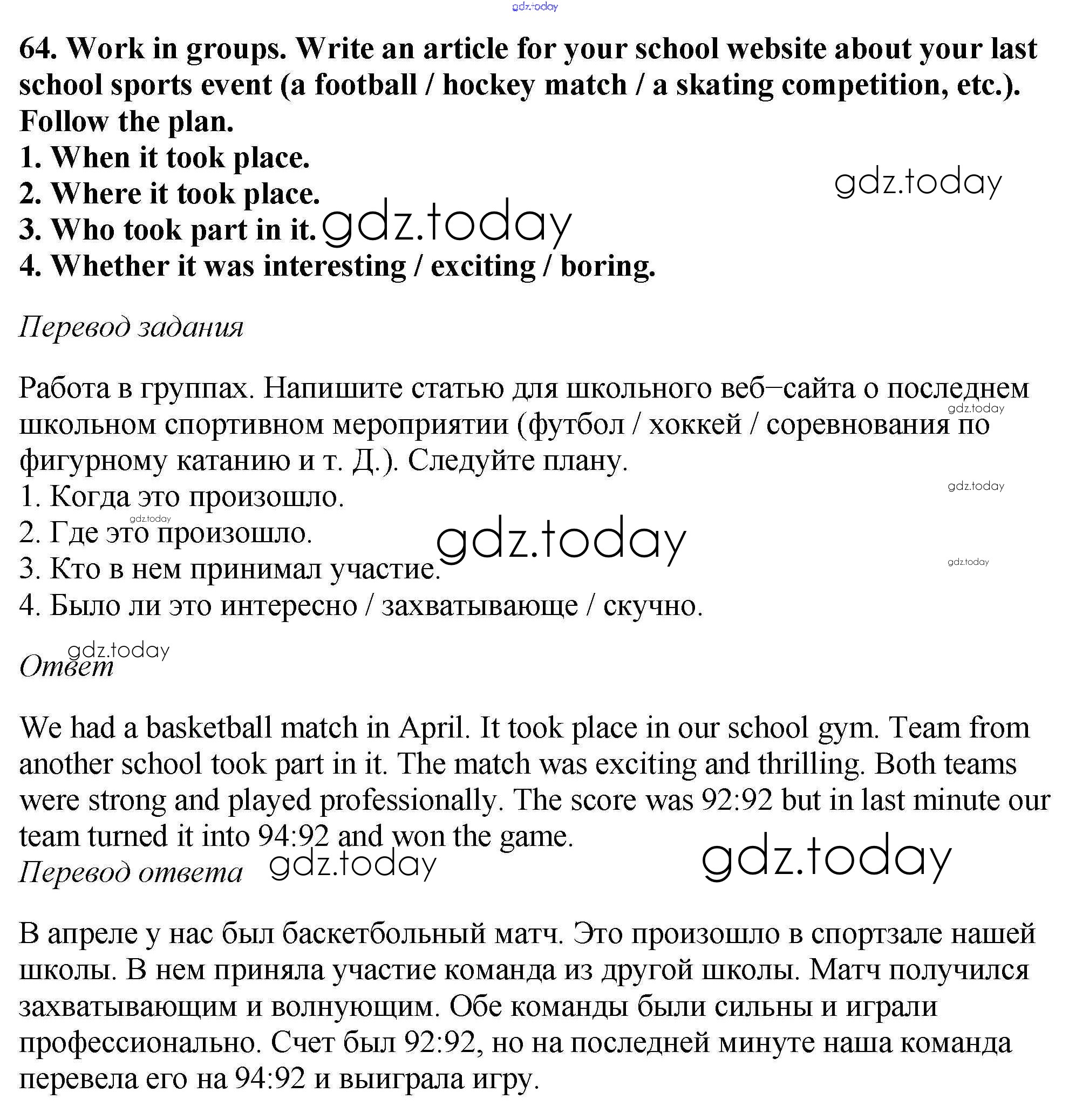 На страницах сайта gdz.today вы найдете учебный и вспомогательный материал, направленный на улучшения знаний школьной программы. ГДЗ - онлайн мир знаний Exercises Unit 4 64 Учебнику по Английскому языку для 6 класса Биболетова, Денисенко Титул, Дрофа Enjoy English 2015, 2019