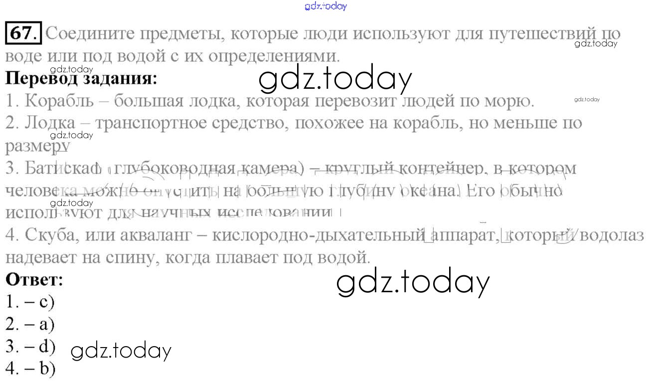 На страницах сайта gdz.today вы найдете учебный и вспомогательный материал, направленный на улучшения знаний школьной программы. ГДЗ - онлайн мир знаний Exercises Unit 4 67 Учебнику по Английскому языку для 6 класса Биболетова, Денисенко Титул, Дрофа Enjoy English 2015, 2019