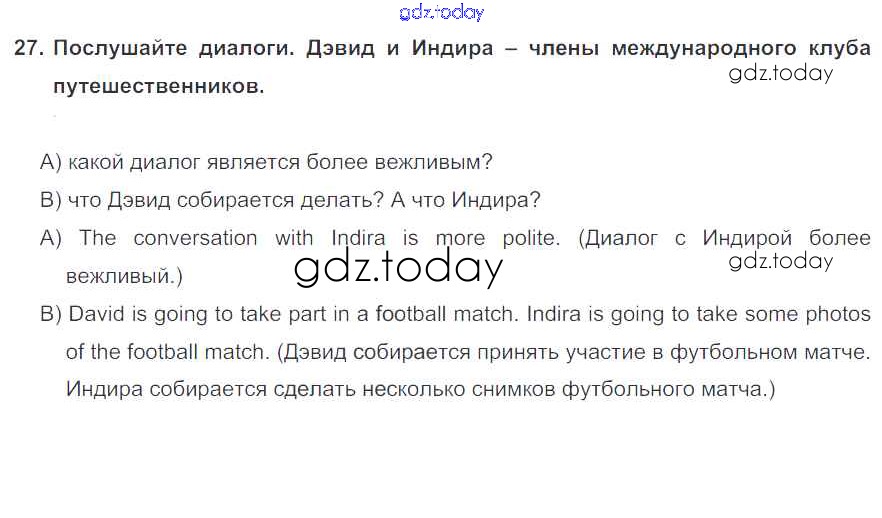 На страницах сайта gdz.today вы найдете учебный и вспомогательный материал, направленный на улучшения знаний школьной программы. ГДЗ - онлайн мир знаний Exercises Unit 1 27 Учебнику по Английскому языку для 6 класса Биболетова, Денисенко Титул, Дрофа Enjoy English 2015, 2019