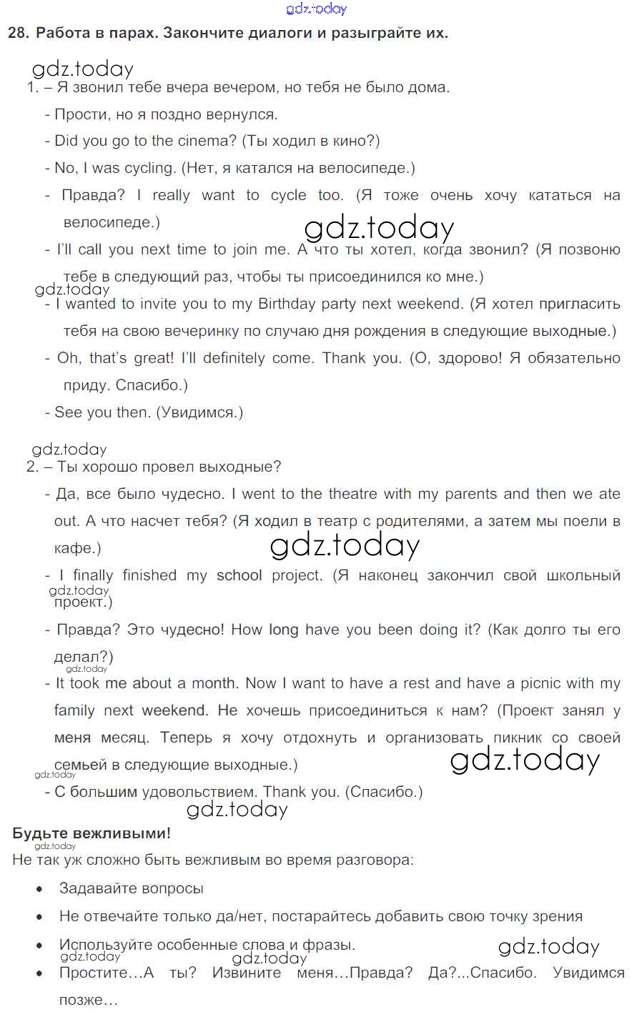 На страницах сайта gdz.today вы найдете учебный и вспомогательный материал, направленный на улучшения знаний школьной программы. ГДЗ - онлайн мир знаний Exercises Unit 1 28 Учебнику по Английскому языку для 6 класса Биболетова, Денисенко Титул, Дрофа Enjoy English 2015, 2019