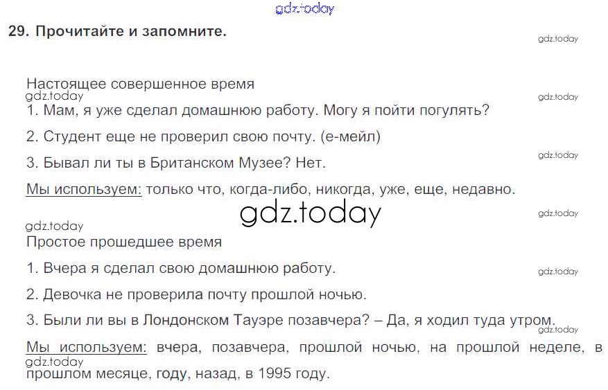 На страницах сайта gdz.today вы найдете учебный и вспомогательный материал, направленный на улучшения знаний школьной программы. ГДЗ - онлайн мир знаний Exercises Unit 1 29 Учебнику по Английскому языку для 6 класса Биболетова, Денисенко Титул, Дрофа Enjoy English 2015, 2019