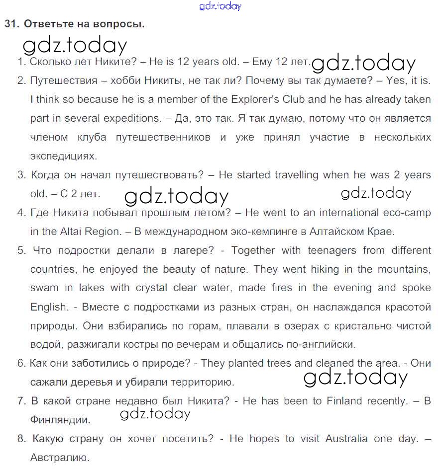 На страницах сайта gdz.today вы найдете учебный и вспомогательный материал, направленный на улучшения знаний школьной программы. ГДЗ - онлайн мир знаний Exercises Unit 1 31 Учебнику по Английскому языку для 6 класса Биболетова, Денисенко Титул, Дрофа Enjoy English 2015, 2019