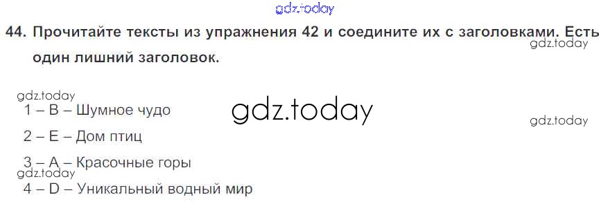 На страницах сайта gdz.today вы найдете учебный и вспомогательный материал, направленный на улучшения знаний школьной программы. ГДЗ - онлайн мир знаний Exercises Unit 1 44 Учебнику по Английскому языку для 6 класса Биболетова, Денисенко Титул, Дрофа Enjoy English 2015, 2019