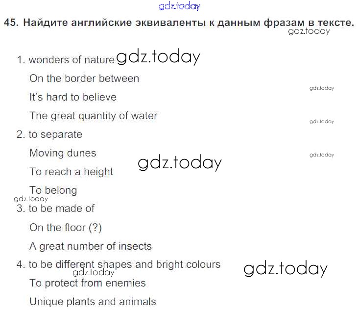 На страницах сайта gdz.today вы найдете учебный и вспомогательный материал, направленный на улучшения знаний школьной программы. ГДЗ - онлайн мир знаний Exercises Unit 1 45 Учебнику по Английскому языку для 6 класса Биболетова, Денисенко Титул, Дрофа Enjoy English 2015, 2019