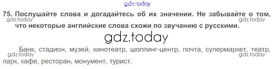 На страницах сайта gdz.today вы найдете учебный и вспомогательный материал, направленный на улучшения знаний школьной программы. ГДЗ - онлайн мир знаний Exercises Unit 1 75 Учебнику по Английскому языку для 6 класса Биболетова, Денисенко Титул, Дрофа Enjoy English 2015, 2019