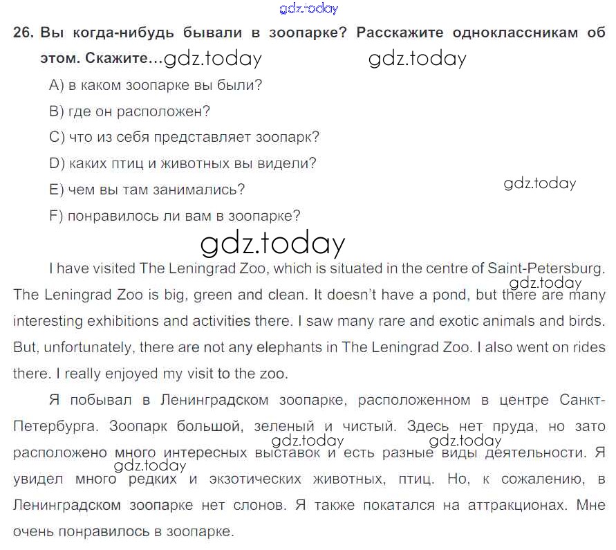 На страницах сайта gdz.today вы найдете учебный и вспомогательный материал, направленный на улучшения знаний школьной программы. ГДЗ - онлайн мир знаний Exercises Unit 2 26 Учебнику по Английскому языку для 6 класса Биболетова, Денисенко Титул, Дрофа Enjoy English 2015, 2019