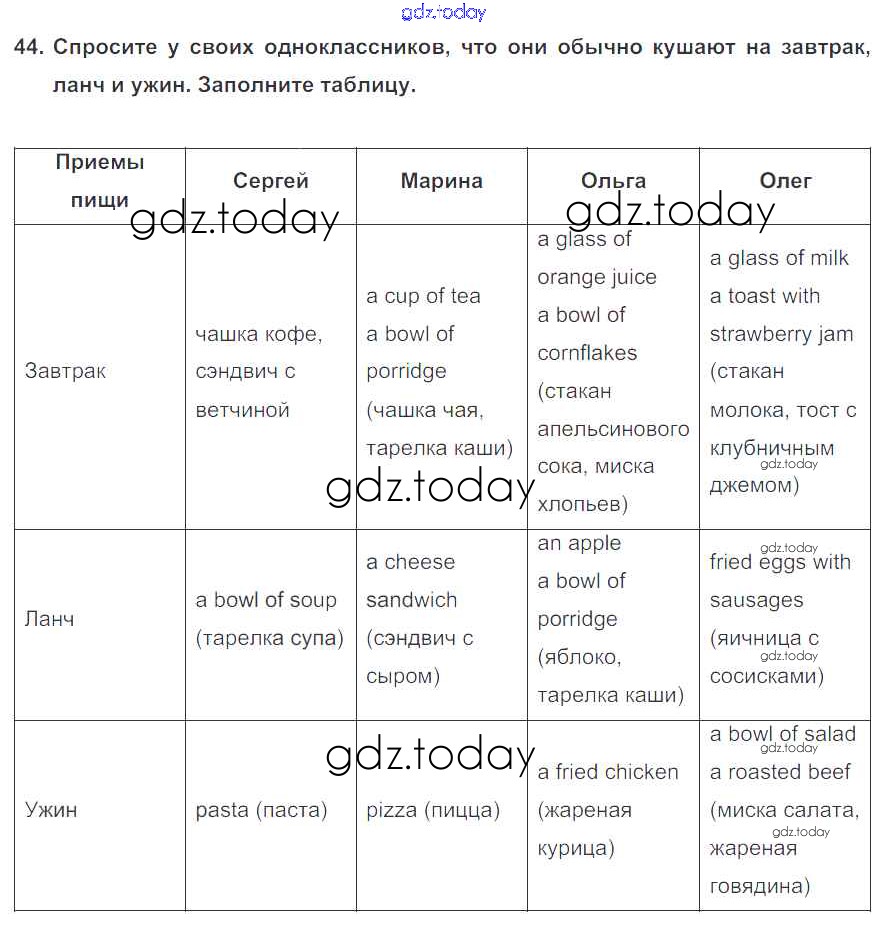 На страницах сайта gdz.today вы найдете учебный и вспомогательный материал, направленный на улучшения знаний школьной программы. ГДЗ - онлайн мир знаний Exercises Unit 2 44 Учебнику по Английскому языку для 6 класса Биболетова, Денисенко Титул, Дрофа Enjoy English 2015, 2019