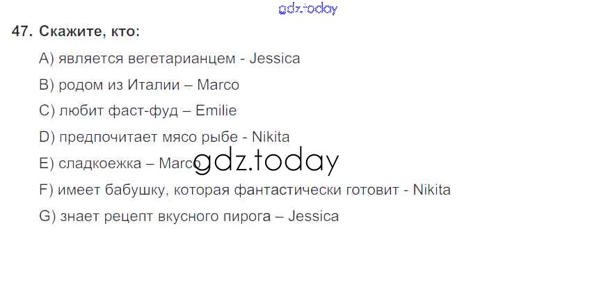 На страницах сайта gdz.today вы найдете учебный и вспомогательный материал, направленный на улучшения знаний школьной программы. ГДЗ - онлайн мир знаний Exercises Unit 2 47 Учебнику по Английскому языку для 6 класса Биболетова, Денисенко Титул, Дрофа Enjoy English 2015, 2019