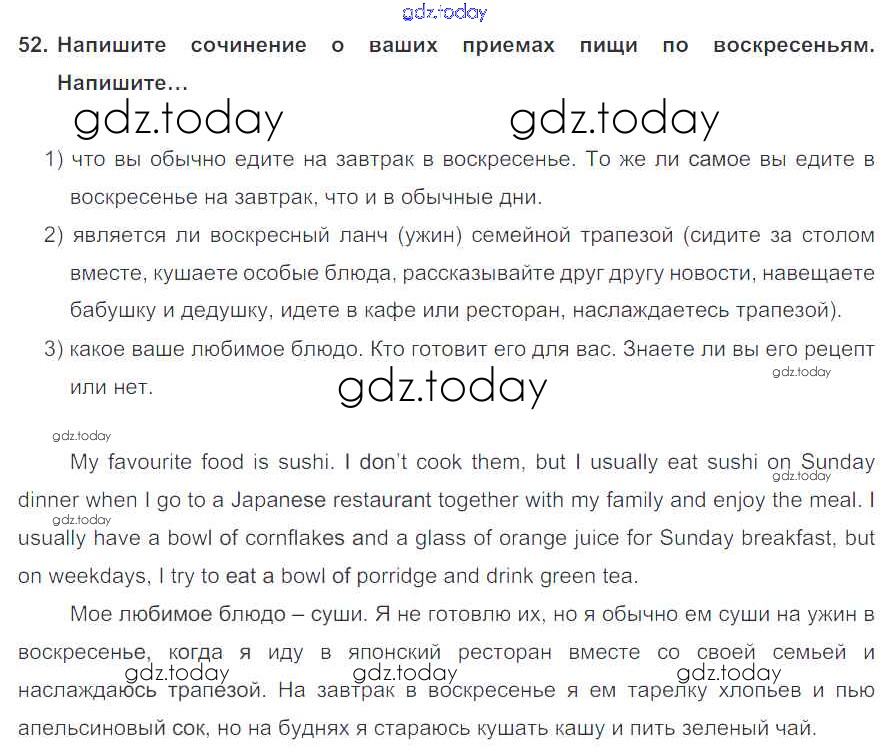 На страницах сайта gdz.today вы найдете учебный и вспомогательный материал, направленный на улучшения знаний школьной программы. ГДЗ - онлайн мир знаний Exercises Unit 2 52 Учебнику по Английскому языку для 6 класса Биболетова, Денисенко Титул, Дрофа Enjoy English 2015, 2019