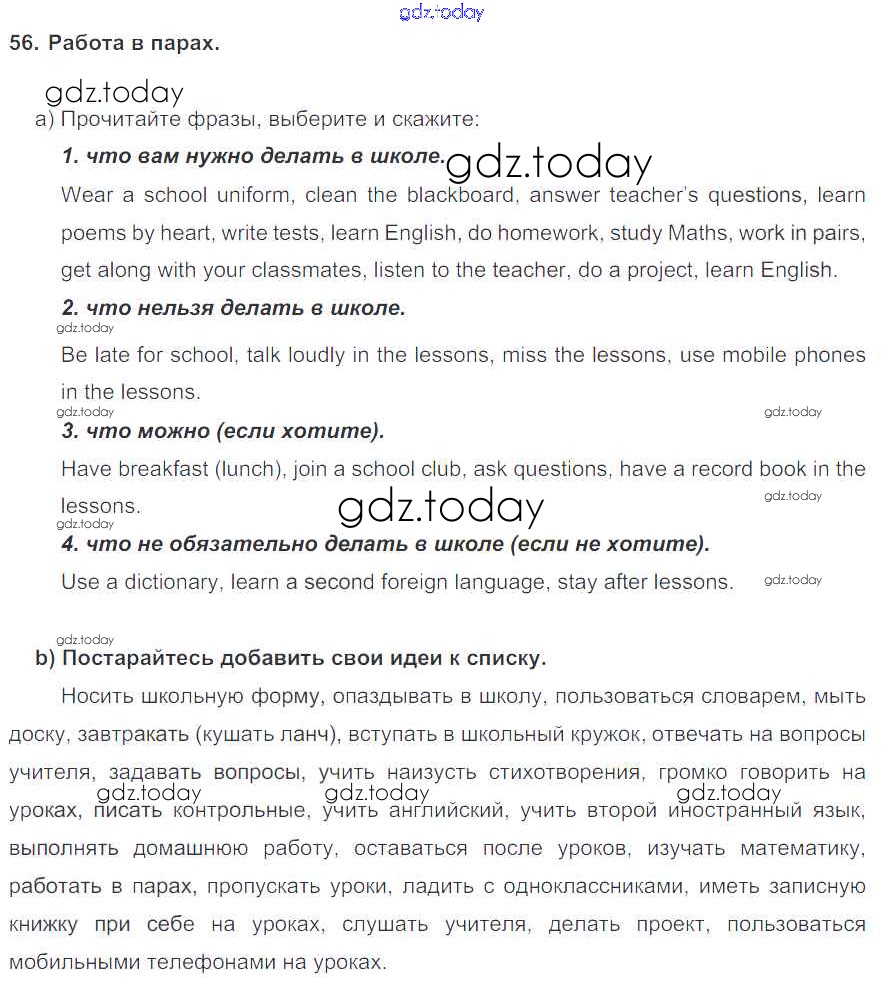 На страницах сайта gdz.today вы найдете учебный и вспомогательный материал, направленный на улучшения знаний школьной программы. ГДЗ - онлайн мир знаний Exercises Unit 2 56 Учебнику по Английскому языку для 6 класса Биболетова, Денисенко Титул, Дрофа Enjoy English 2015, 2019