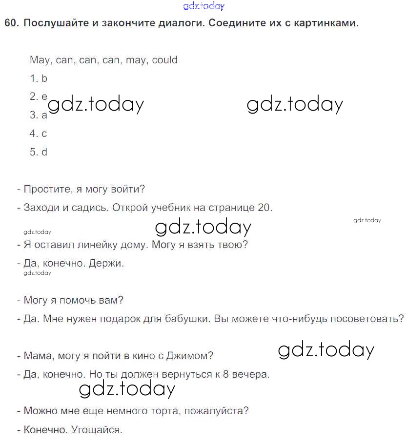 На страницах сайта gdz.today вы найдете учебный и вспомогательный материал, направленный на улучшения знаний школьной программы. ГДЗ - онлайн мир знаний Exercises Unit 2 60 Учебнику по Английскому языку для 6 класса Биболетова, Денисенко Титул, Дрофа Enjoy English 2015, 2019