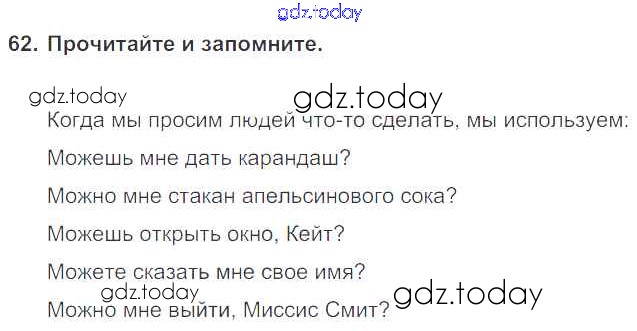 На страницах сайта gdz.today вы найдете учебный и вспомогательный материал, направленный на улучшения знаний школьной программы. ГДЗ - онлайн мир знаний Exercises Unit 2 62 Учебнику по Английскому языку для 6 класса Биболетова, Денисенко Титул, Дрофа Enjoy English 2015, 2019