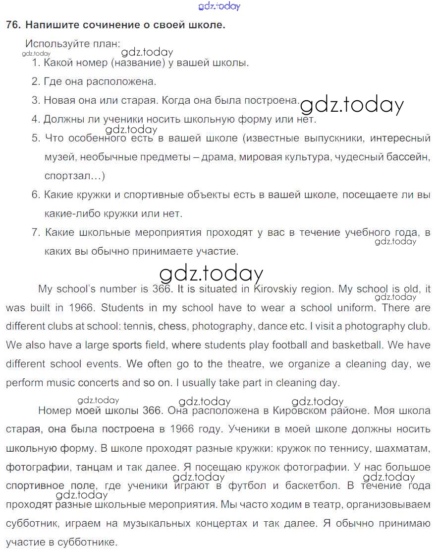 На страницах сайта gdz.today вы найдете учебный и вспомогательный материал, направленный на улучшения знаний школьной программы. ГДЗ - онлайн мир знаний Exercises Unit 2 76 Учебнику по Английскому языку для 6 класса Биболетова, Денисенко Титул, Дрофа Enjoy English 2015, 2019