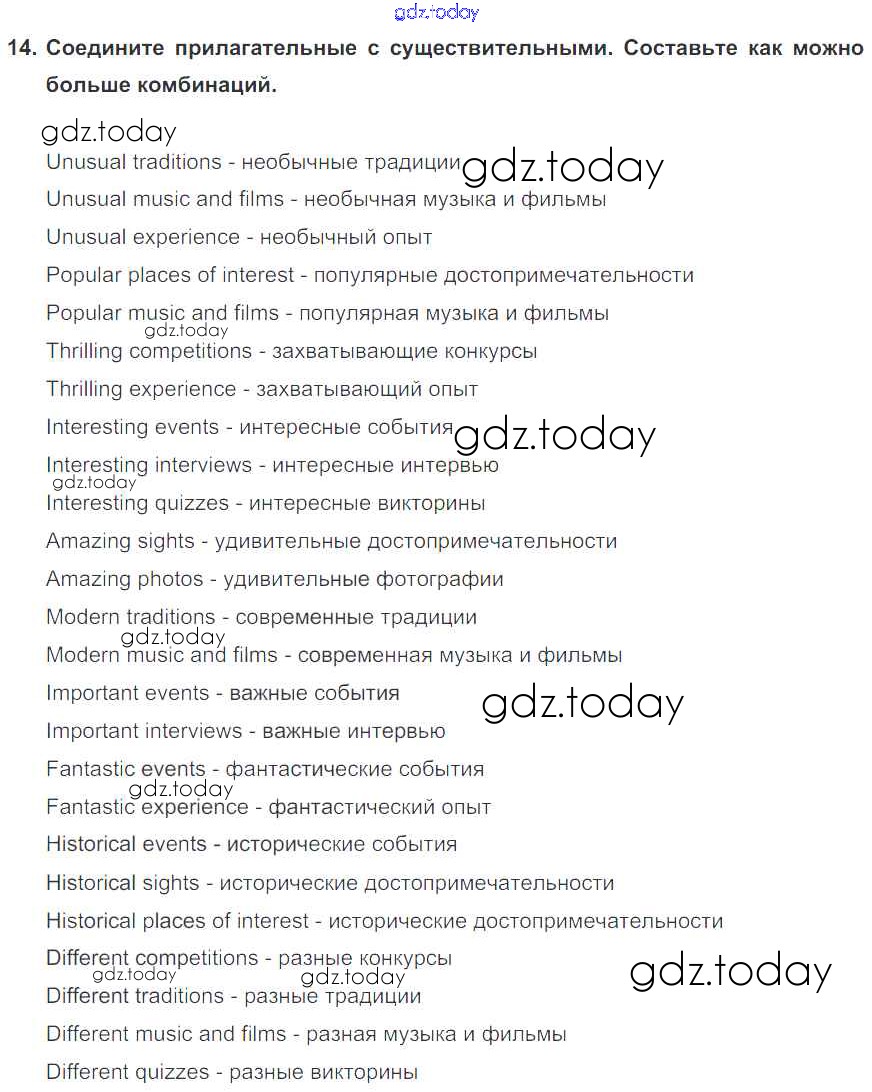 На страницах сайта gdz.today вы найдете учебный и вспомогательный материал, направленный на улучшения знаний школьной программы. ГДЗ - онлайн мир знаний Exercises Unit 3 14 Учебнику по Английскому языку для 6 класса Биболетова, Денисенко Титул, Дрофа Enjoy English 2015, 2019