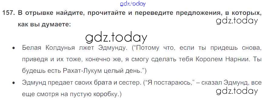 На страницах сайта gdz.today вы найдете учебный и вспомогательный материал, направленный на улучшения знаний школьной программы. ГДЗ - онлайн мир знаний Exercises Unit 3 157 Учебнику по Английскому языку для 6 класса Биболетова, Денисенко Титул, Дрофа Enjoy English 2015, 2019