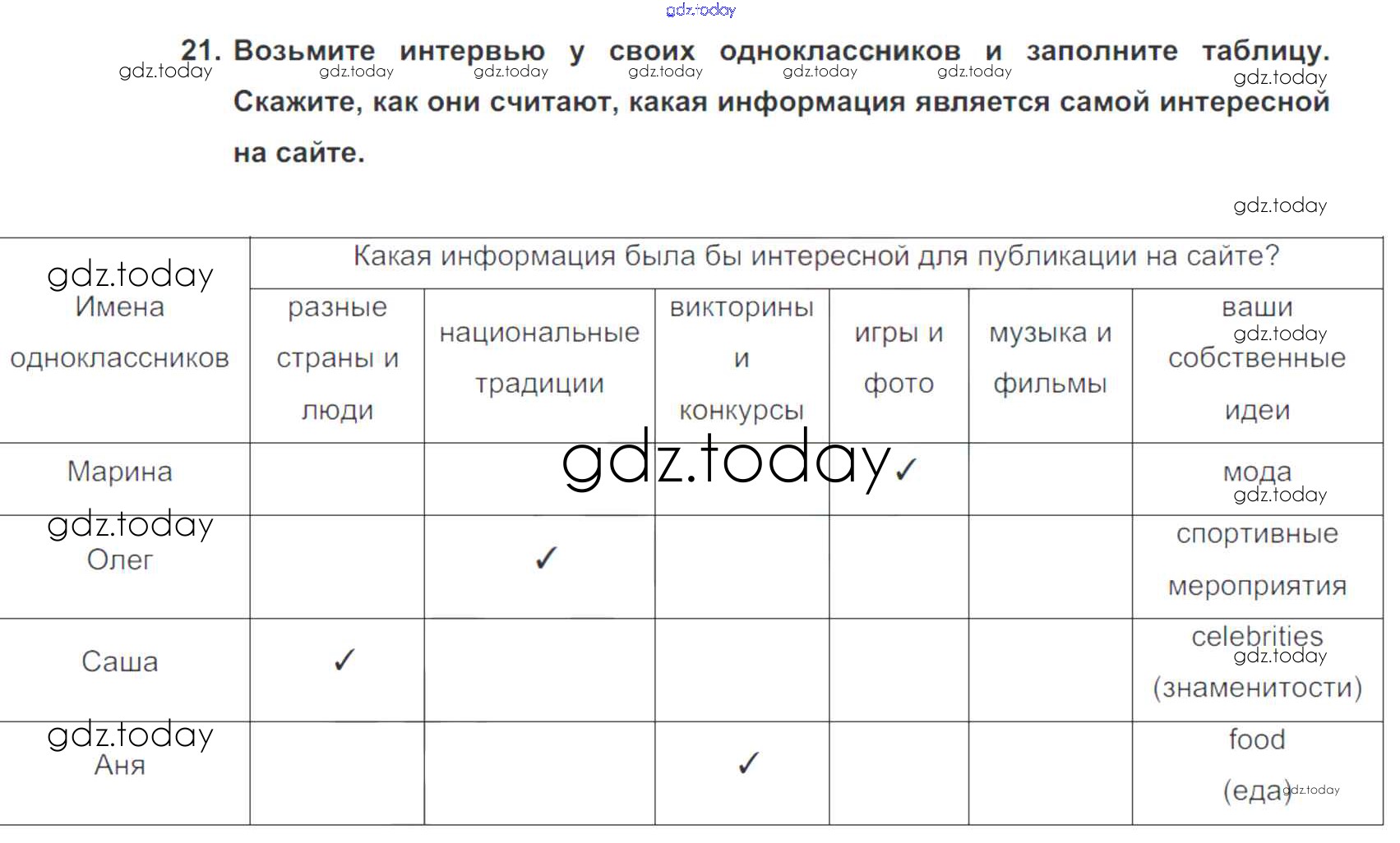 На страницах сайта gdz.today вы найдете учебный и вспомогательный материал, направленный на улучшения знаний школьной программы. ГДЗ - онлайн мир знаний Exercises Unit 3 21 Учебнику по Английскому языку для 6 класса Биболетова, Денисенко Титул, Дрофа Enjoy English 2015, 2019