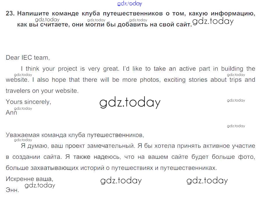 На страницах сайта gdz.today вы найдете учебный и вспомогательный материал, направленный на улучшения знаний школьной программы. ГДЗ - онлайн мир знаний Exercises Unit 3 23 Учебнику по Английскому языку для 6 класса Биболетова, Денисенко Титул, Дрофа Enjoy English 2015, 2019