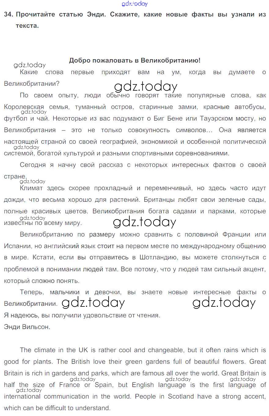 На страницах сайта gdz.today вы найдете учебный и вспомогательный материал, направленный на улучшения знаний школьной программы. ГДЗ - онлайн мир знаний Exercises Unit 3 34 Учебнику по Английскому языку для 6 класса Биболетова, Денисенко Титул, Дрофа Enjoy English 2015, 2019