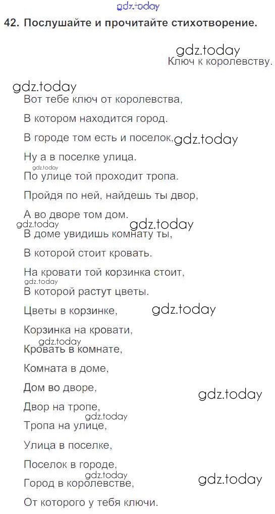 На страницах сайта gdz.today вы найдете учебный и вспомогательный материал, направленный на улучшения знаний школьной программы. ГДЗ - онлайн мир знаний Exercises Unit 3 42 Учебнику по Английскому языку для 6 класса Биболетова, Денисенко Титул, Дрофа Enjoy English 2015, 2019
