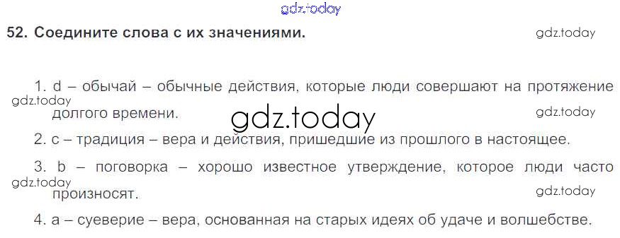 На страницах сайта gdz.today вы найдете учебный и вспомогательный материал, направленный на улучшения знаний школьной программы. ГДЗ - онлайн мир знаний Exercises Unit 3 52 Учебнику по Английскому языку для 6 класса Биболетова, Денисенко Титул, Дрофа Enjoy English 2015, 2019