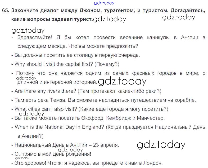 На страницах сайта gdz.today вы найдете учебный и вспомогательный материал, направленный на улучшения знаний школьной программы. ГДЗ - онлайн мир знаний Exercises Unit 3 65 Учебнику по Английскому языку для 6 класса Биболетова, Денисенко Титул, Дрофа Enjoy English 2015, 2019