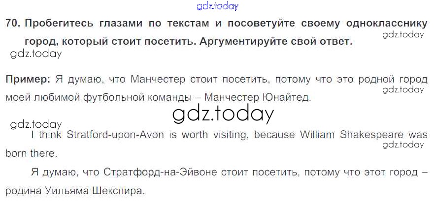 На страницах сайта gdz.today вы найдете учебный и вспомогательный материал, направленный на улучшения знаний школьной программы. ГДЗ - онлайн мир знаний Exercises Unit 3 70 Учебнику по Английскому языку для 6 класса Биболетова, Денисенко Титул, Дрофа Enjoy English 2015, 2019