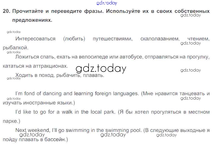 На страницах сайта gdz.today вы найдете учебный и вспомогательный материал, направленный на улучшения знаний школьной программы. ГДЗ - онлайн мир знаний Exercises Unit 4 20 Учебнику по Английскому языку для 6 класса Биболетова, Денисенко Титул, Дрофа Enjoy English 2015, 2019
