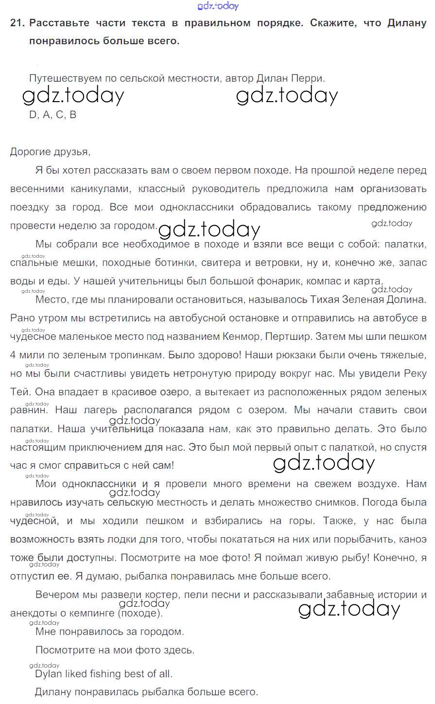 На страницах сайта gdz.today вы найдете учебный и вспомогательный материал, направленный на улучшения знаний школьной программы. ГДЗ - онлайн мир знаний Exercises Unit 4 21 Учебнику по Английскому языку для 6 класса Биболетова, Денисенко Титул, Дрофа Enjoy English 2015, 2019
