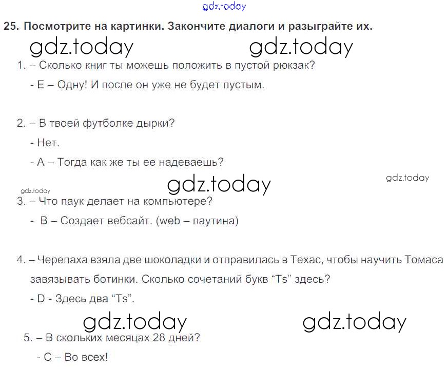 На страницах сайта gdz.today вы найдете учебный и вспомогательный материал, направленный на улучшения знаний школьной программы. ГДЗ - онлайн мир знаний Exercises Unit 4 25 Учебнику по Английскому языку для 6 класса Биболетова, Денисенко Титул, Дрофа Enjoy English 2015, 2019