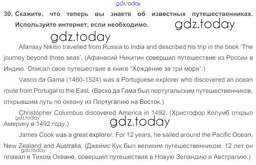 На страницах сайта gdz.today вы найдете учебный и вспомогательный материал, направленный на улучшения знаний школьной программы. ГДЗ - онлайн мир знаний Exercises Unit 4 30 Учебнику по Английскому языку для 6 класса Биболетова, Денисенко Титул, Дрофа Enjoy English 2015, 2019