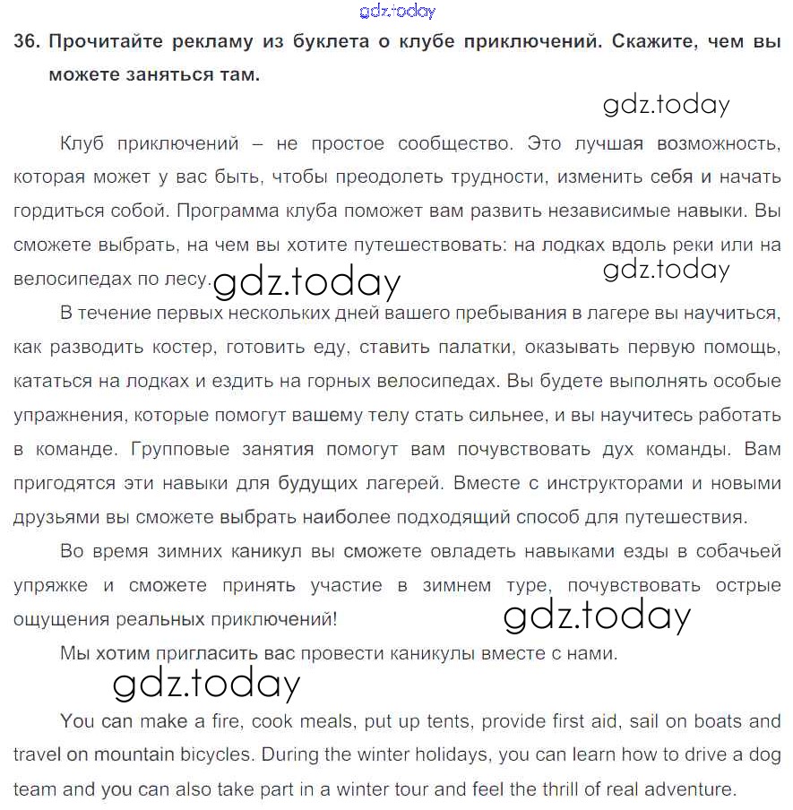 На страницах сайта gdz.today вы найдете учебный и вспомогательный материал, направленный на улучшения знаний школьной программы. ГДЗ - онлайн мир знаний Exercises Unit 4 36 Учебнику по Английскому языку для 6 класса Биболетова, Денисенко Титул, Дрофа Enjoy English 2015, 2019