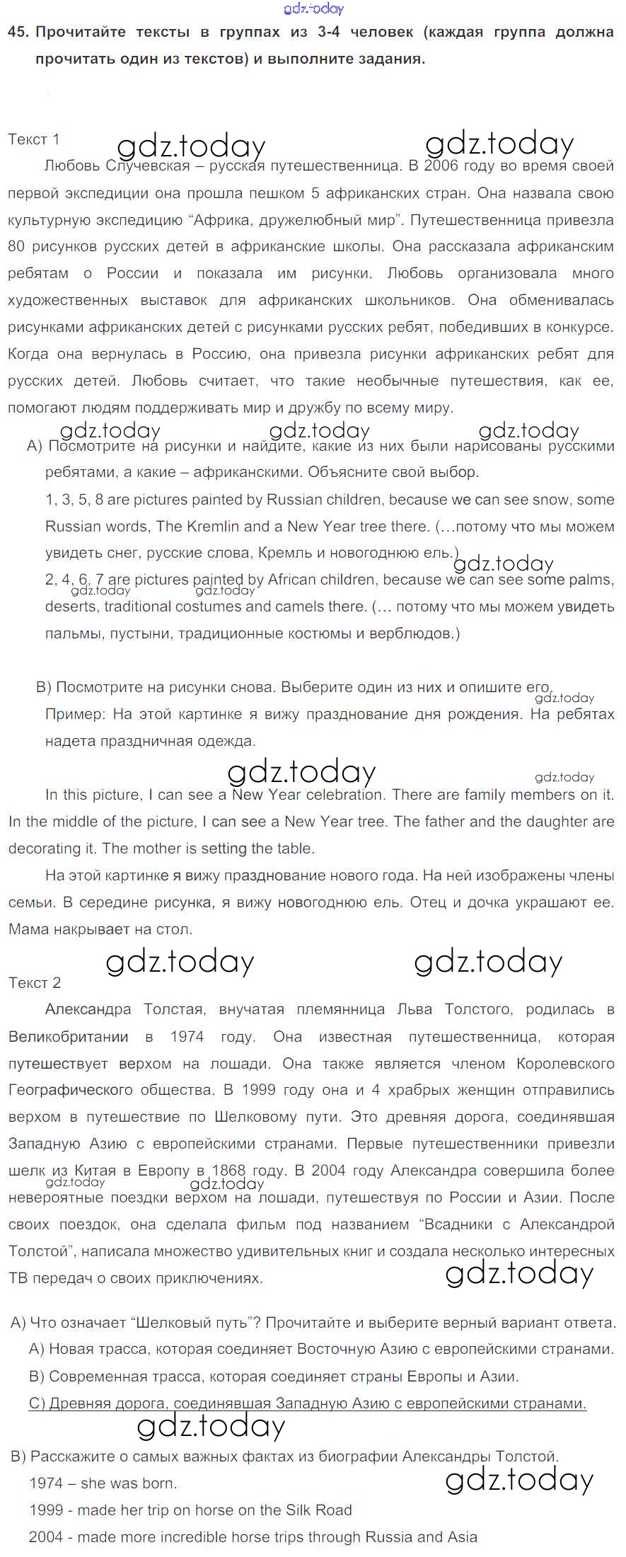 На страницах сайта gdz.today вы найдете учебный и вспомогательный материал, направленный на улучшения знаний школьной программы. ГДЗ - онлайн мир знаний Exercises Unit 4 45 Учебнику по Английскому языку для 6 класса Биболетова, Денисенко Титул, Дрофа Enjoy English 2015, 2019