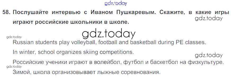 На страницах сайта gdz.today вы найдете учебный и вспомогательный материал, направленный на улучшения знаний школьной программы. ГДЗ - онлайн мир знаний Exercises Unit 4 58 Учебнику по Английскому языку для 6 класса Биболетова, Денисенко Титул, Дрофа Enjoy English 2015, 2019