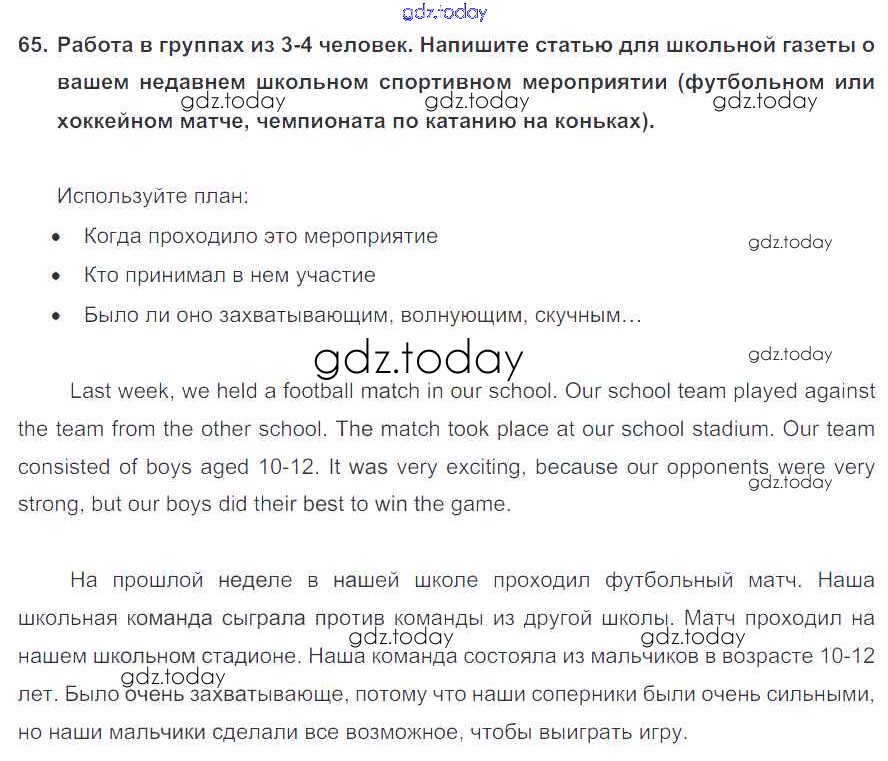 На страницах сайта gdz.today вы найдете учебный и вспомогательный материал, направленный на улучшения знаний школьной программы. ГДЗ - онлайн мир знаний Exercises Unit 4 65 Учебнику по Английскому языку для 6 класса Биболетова, Денисенко Титул, Дрофа Enjoy English 2015, 2019