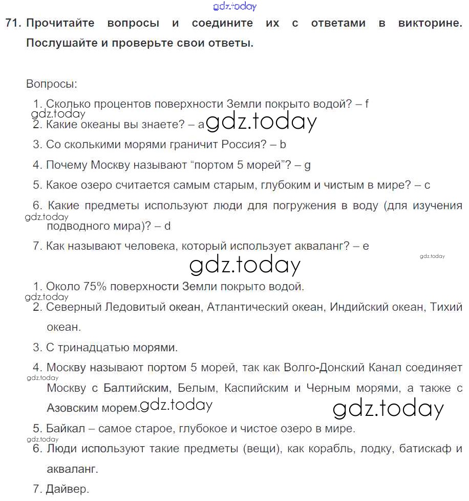 На страницах сайта gdz.today вы найдете учебный и вспомогательный материал, направленный на улучшения знаний школьной программы. ГДЗ - онлайн мир знаний Exercises Unit 4 71 Учебнику по Английскому языку для 6 класса Биболетова, Денисенко Титул, Дрофа Enjoy English 2015, 2019
