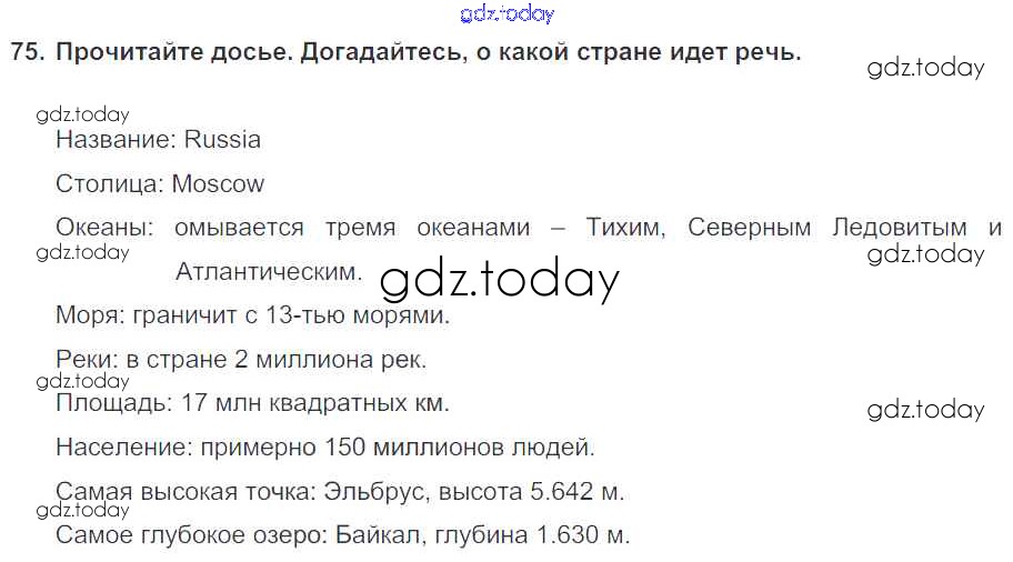 На страницах сайта gdz.today вы найдете учебный и вспомогательный материал, направленный на улучшения знаний школьной программы. ГДЗ - онлайн мир знаний Exercises Unit 4 75 Учебнику по Английскому языку для 6 класса Биболетова, Денисенко Титул, Дрофа Enjoy English 2015, 2019