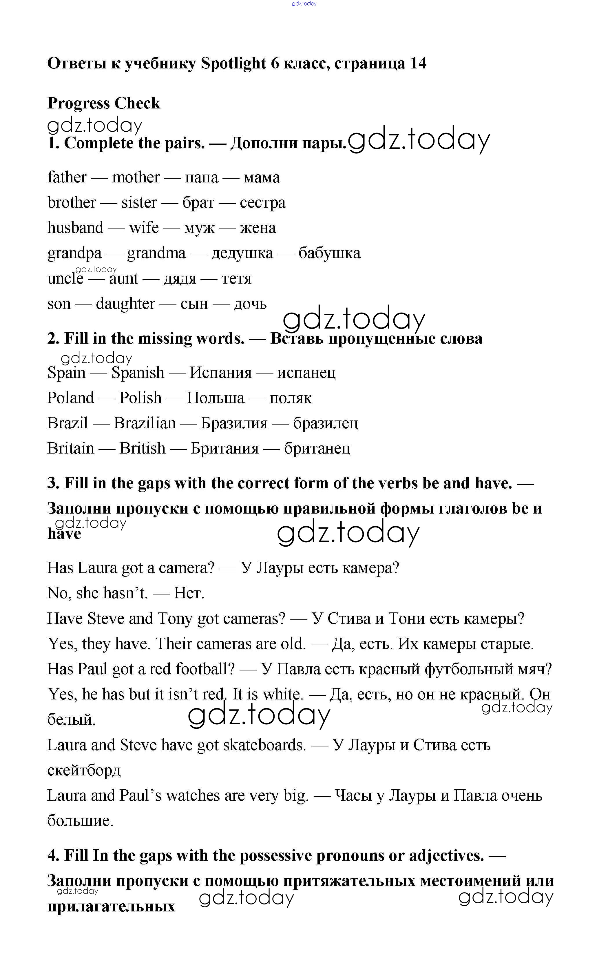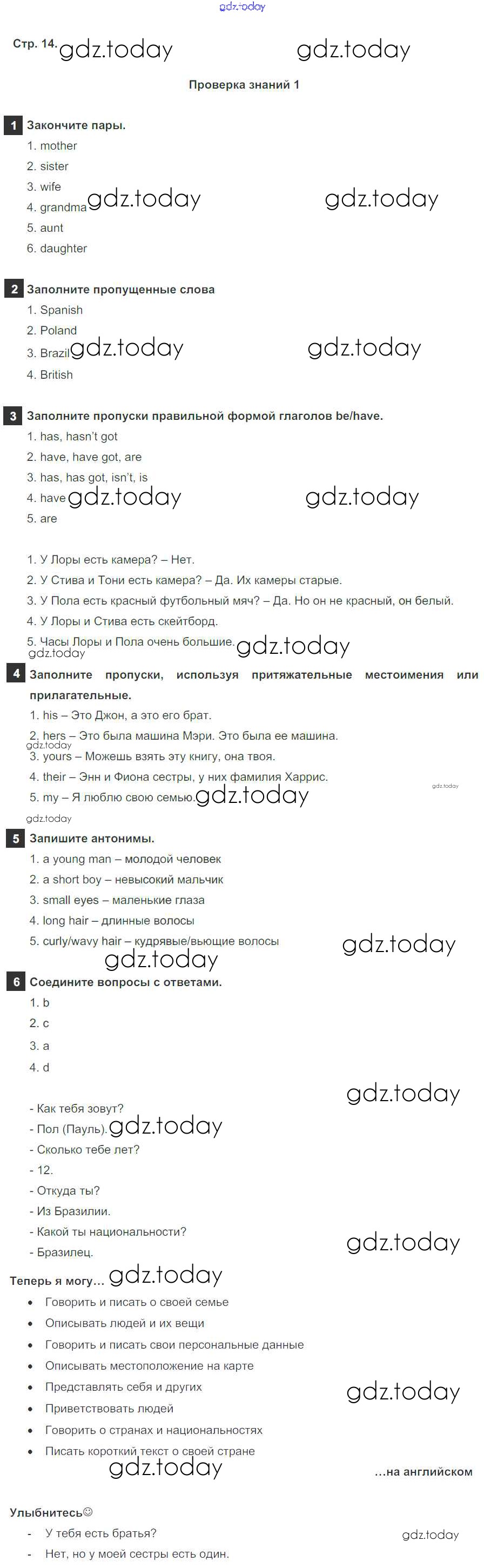 Ответы к Решение к Module 1. Who's who? Страницы 14 Учебнику по Английскому языку для 6 класса Ваулина, Дули Просвещение Spotlight 2017