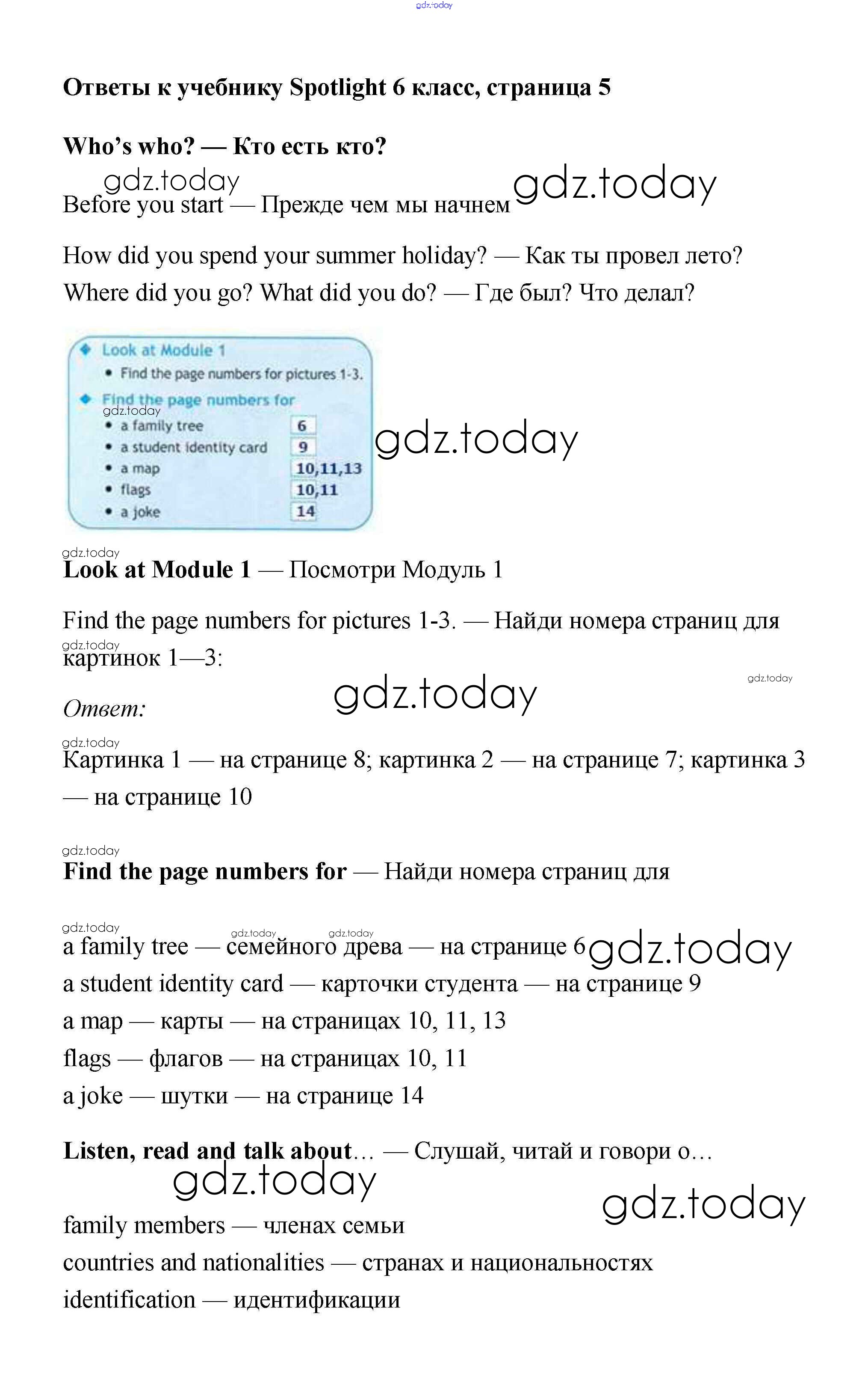 Ответы к Решение к Module 1. Who's who? Страницы 5 Учебнику по Английскому языку для 6 класса Ваулина, Дули Просвещение Spotlight 2017
