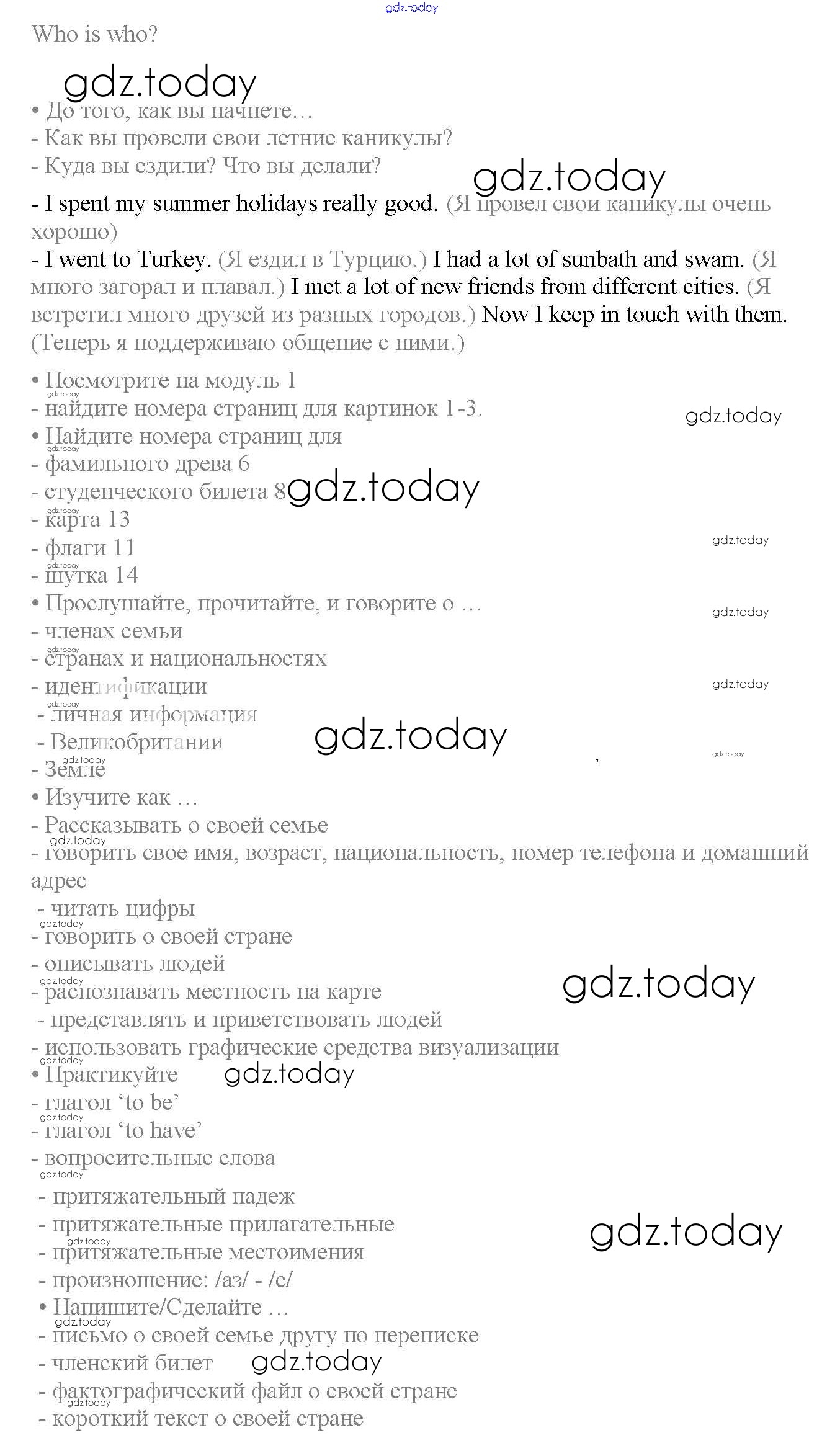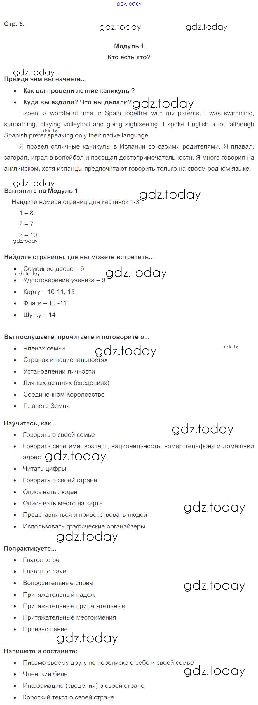 На страницах сайта gdz.today вы найдете учебный и вспомогательный материал, направленный на улучшения знаний школьной программы. ГДЗ - онлайн мир знаний Решение к Module 1. Who's who? Страницы 5 Учебнику по Английскому языку для 6 класса Ваулина, Дули Просвещение Spotlight 2017