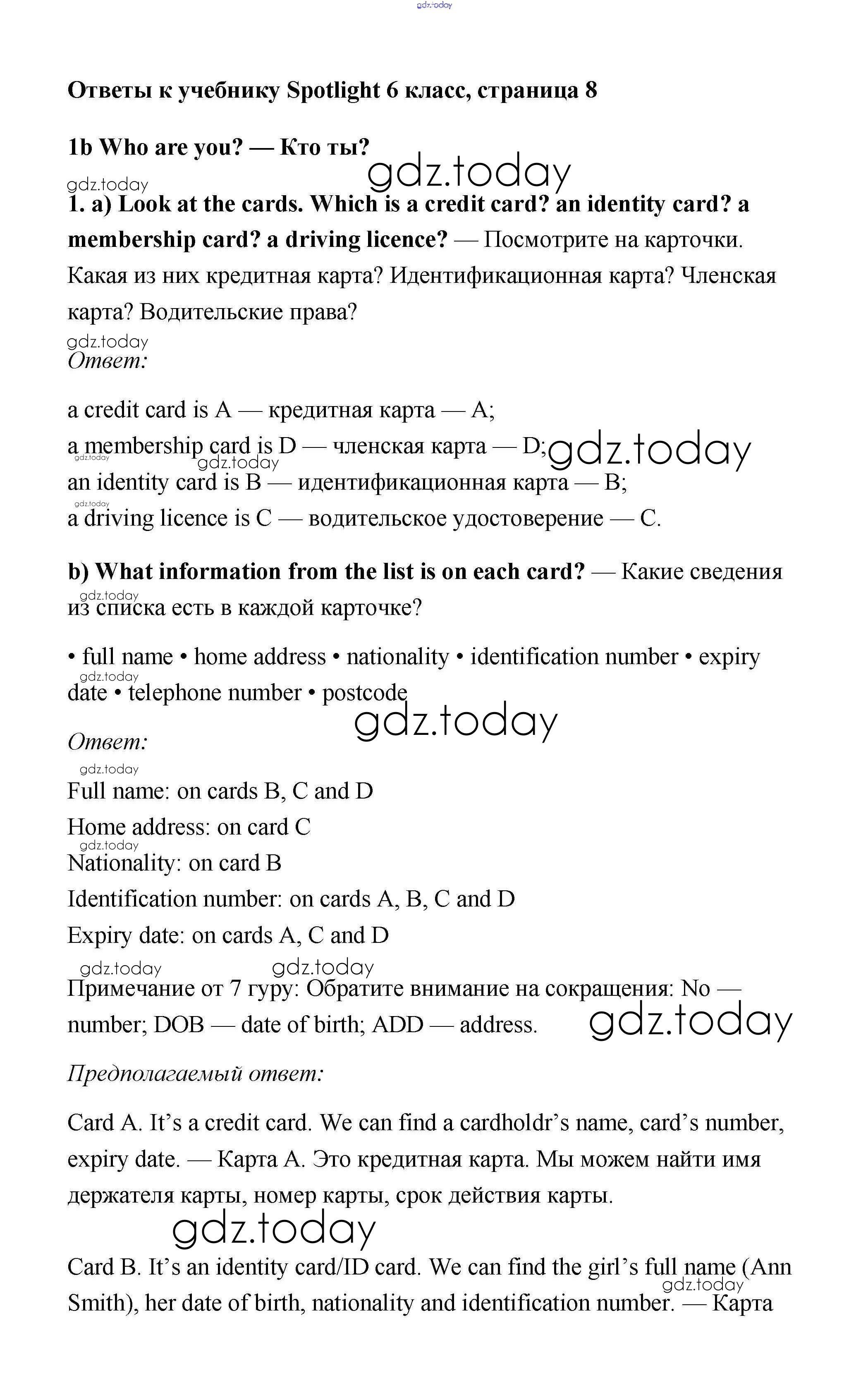 На страницах сайта gdz.today вы найдете учебный и вспомогательный материал, направленный на улучшения знаний школьной программы. ГДЗ - онлайн мир знаний Решение к Module 1. Who's who? Страницы 8 Учебнику по Английскому языку для 6 класса Ваулина, Дули Просвещение Spotlight 2017
