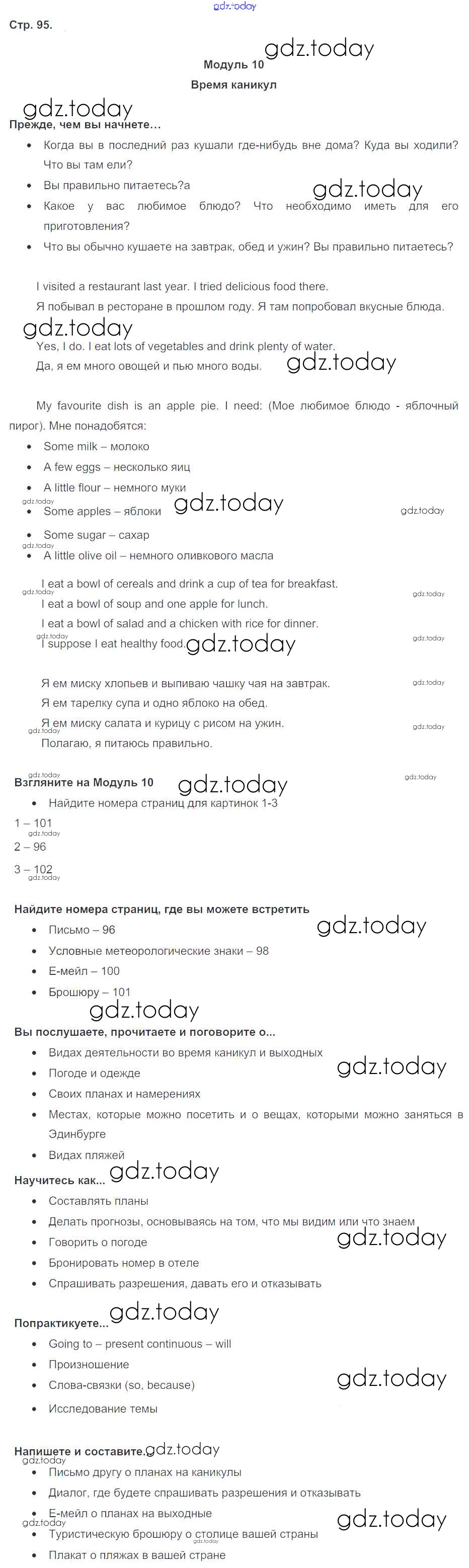 Ответы к Решение к Module 10. Holiday Time. Страницы 95 Учебнику по Английскому языку для 6 класса Ваулина, Дули Просвещение Spotlight 2017