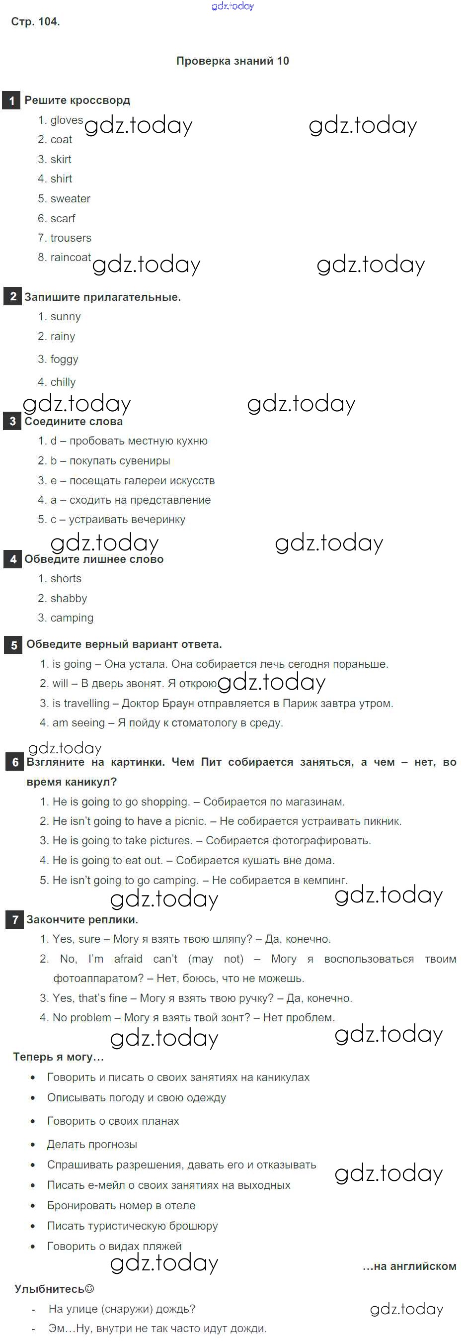 Ответы к Решение к Module 10. Holiday Time. Страницы 104 Учебнику по Английскому языку для 6 класса Ваулина, Дули Просвещение Spotlight 2017