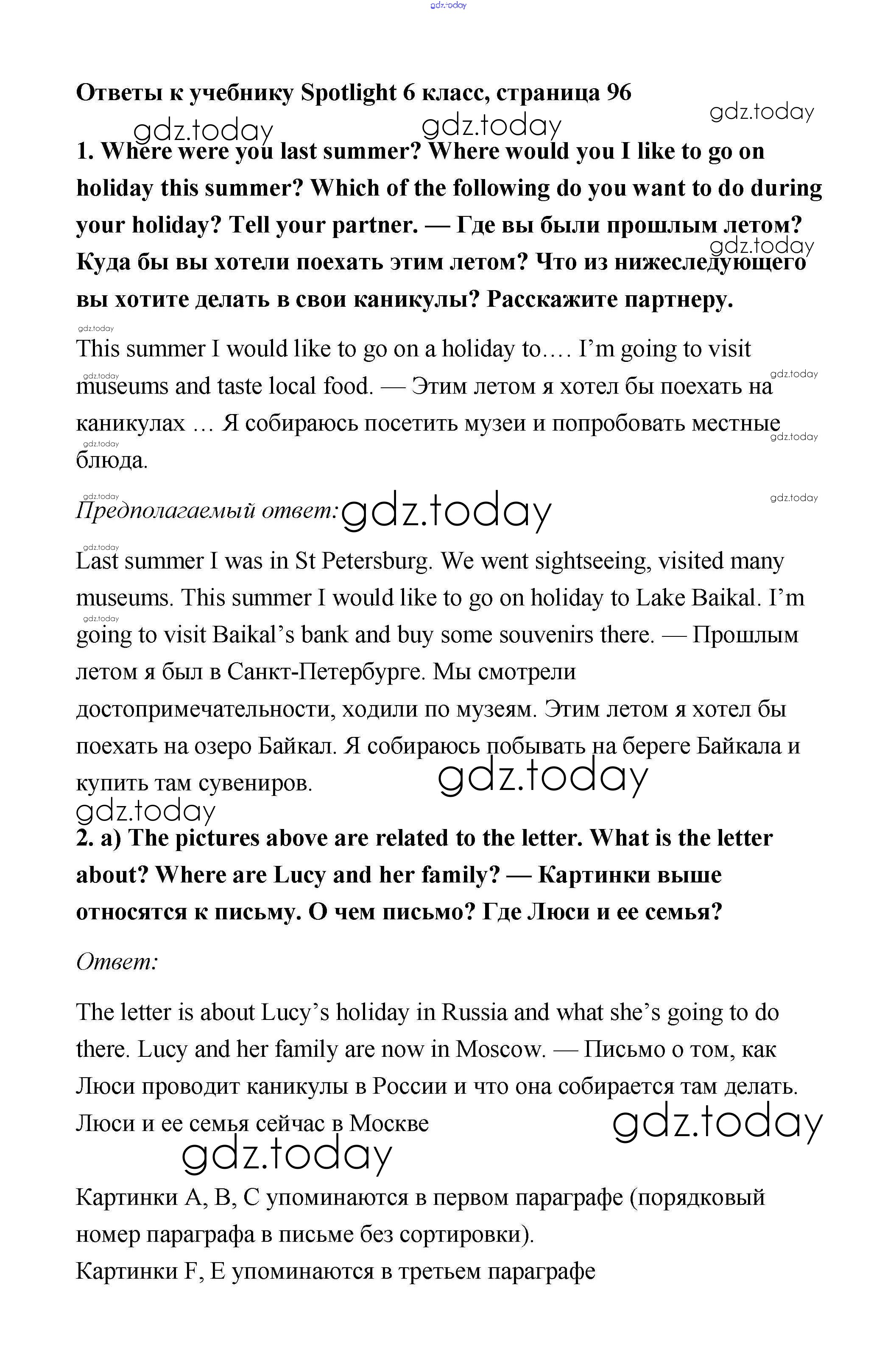 Ответы к Решение к Module 10. Holiday Time. Страницы 96 Учебнику по Английскому языку для 6 класса Ваулина, Дули Просвещение Spotlight 2017