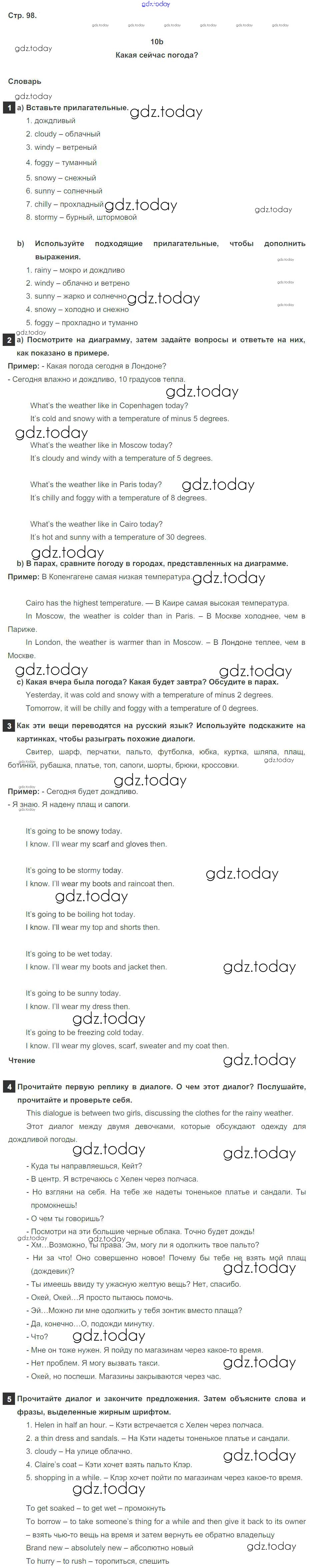 Ответы к Решение к Module 10. Holiday Time. Страницы 98 Учебнику по Английскому языку для 6 класса Ваулина, Дули Просвещение Spotlight 2017