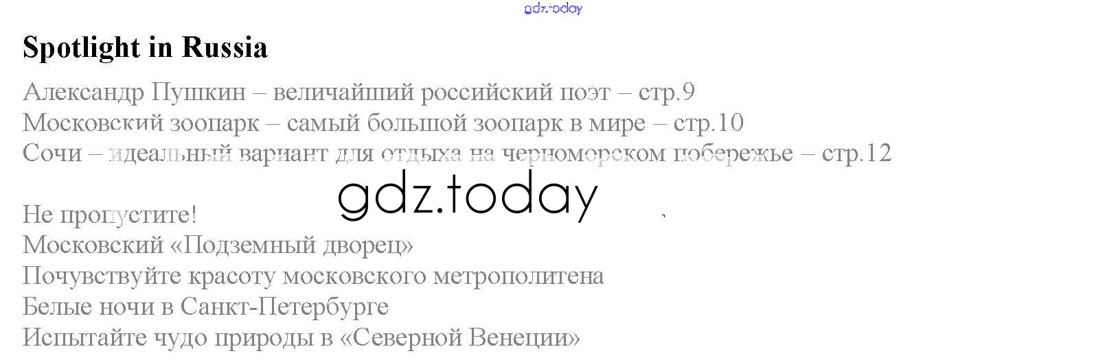 Ответы к Решение к Spotlight on Russia. Страницы 1 Учебнику по Английскому языку для 6 класса Ваулина, Дули Просвещение Spotlight 2017