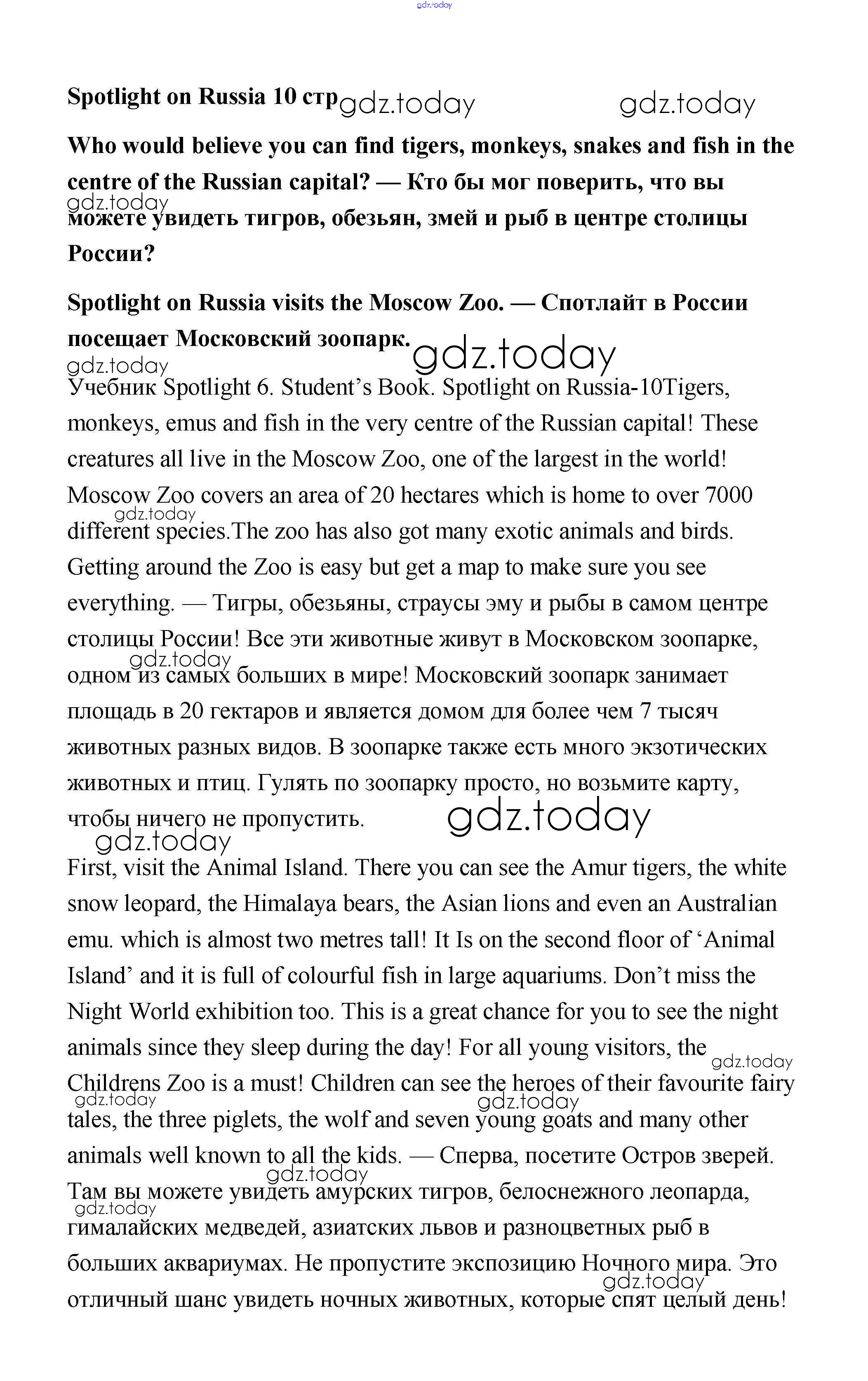 На страницах сайта gdz.today вы найдете учебный и вспомогательный материал, направленный на улучшения знаний школьной программы. ГДЗ - онлайн мир знаний Решение к Spotlight on Russia. Страницы 10 Учебнику по Английскому языку для 6 класса Ваулина, Дули Просвещение Spotlight 2017
