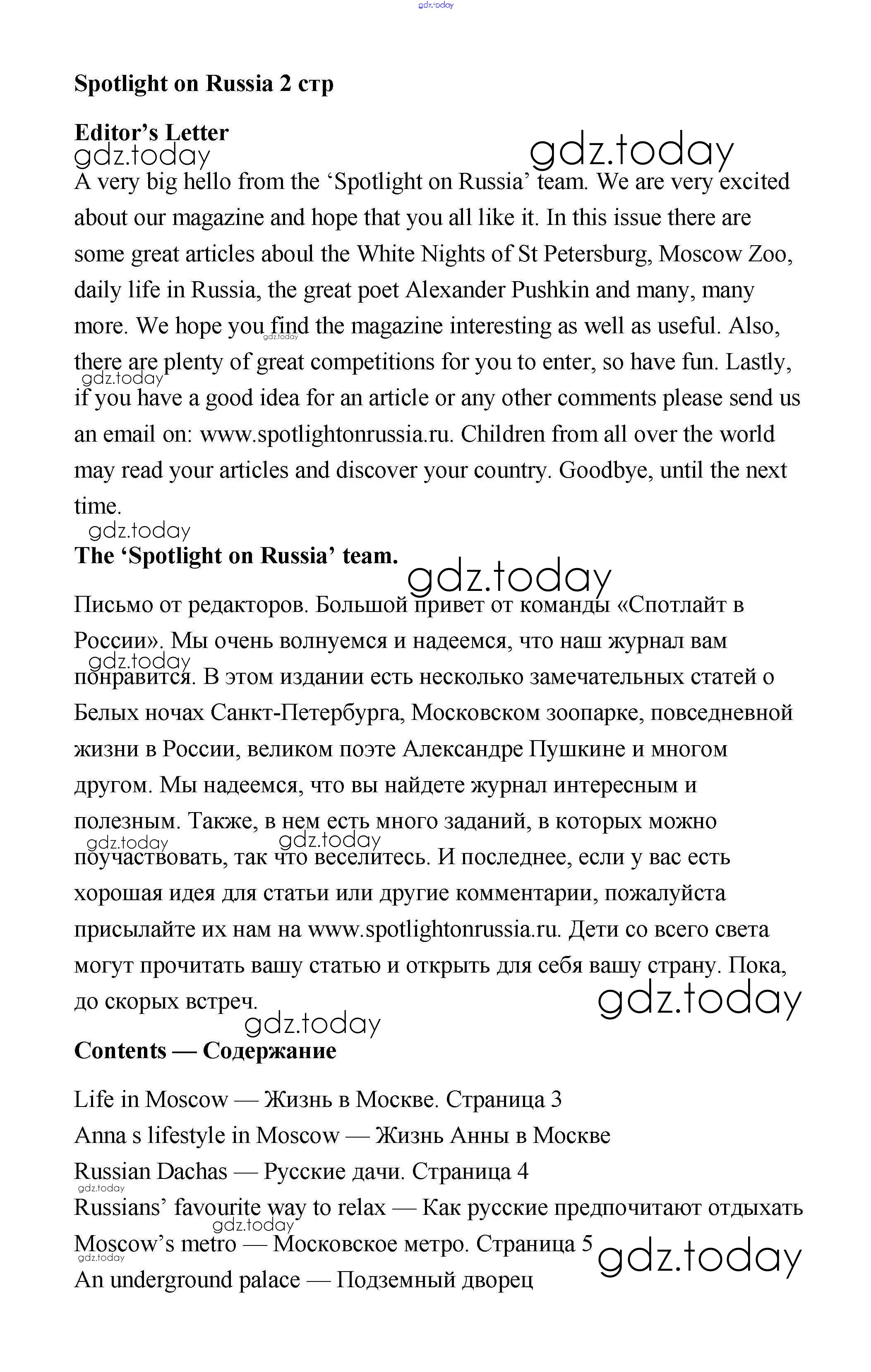 Ответы к Решение к Spotlight on Russia. Страницы 2 Учебнику по Английскому языку для 6 класса Ваулина, Дули Просвещение Spotlight 2017