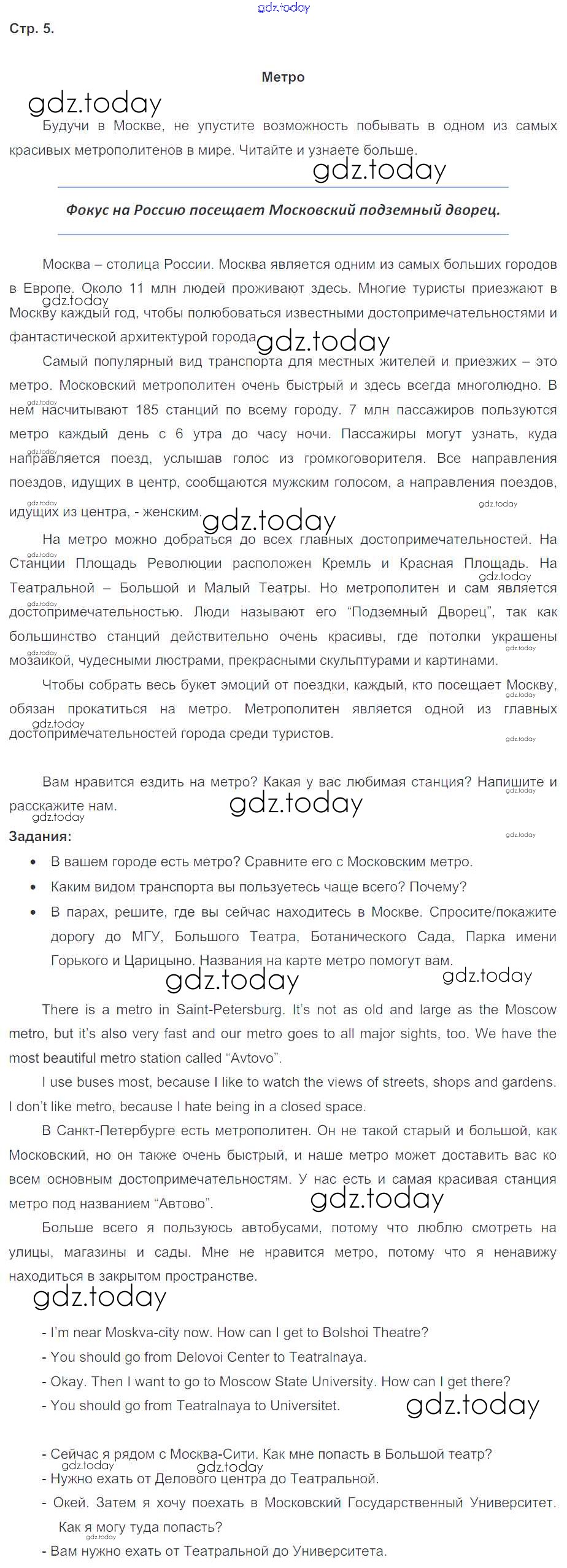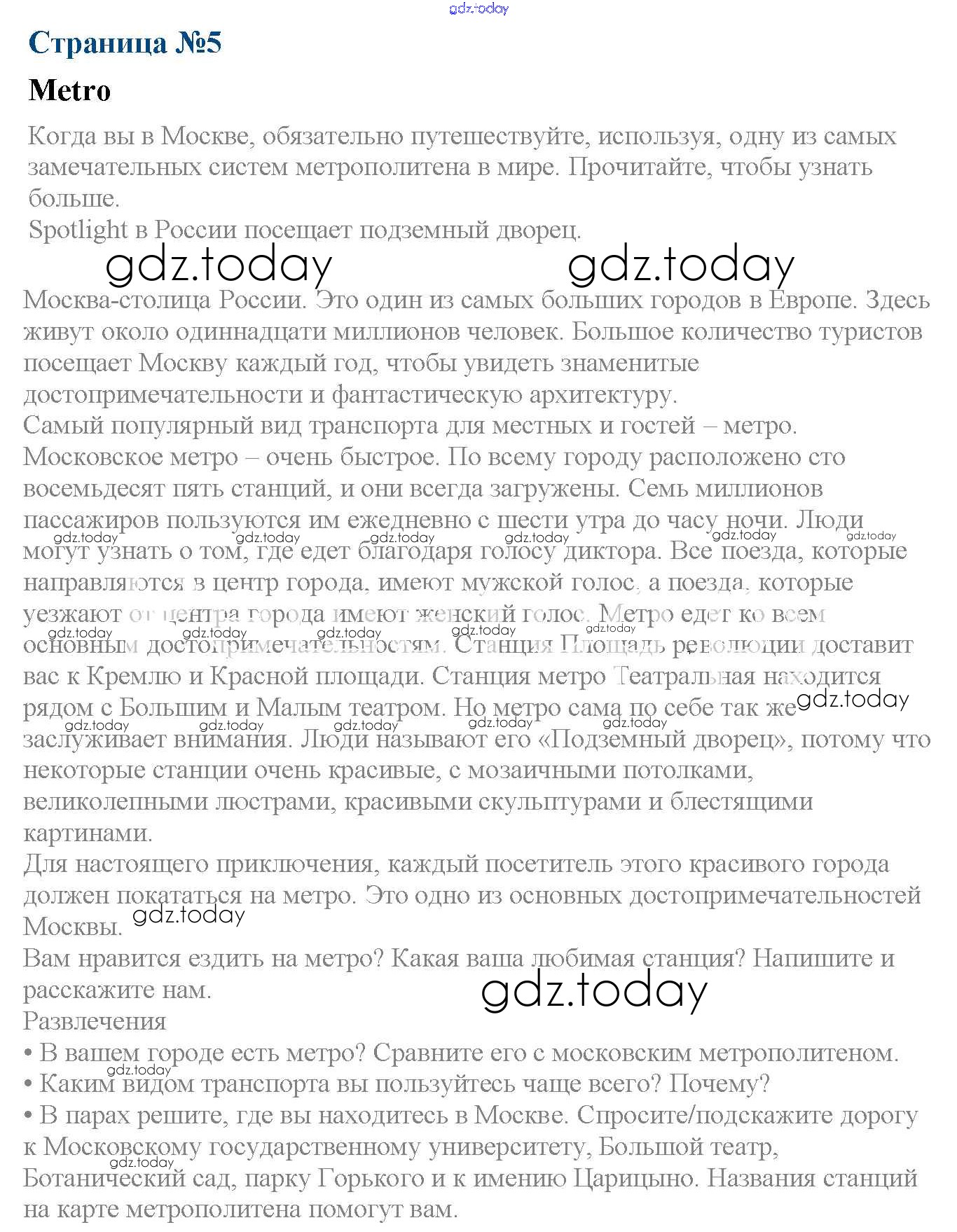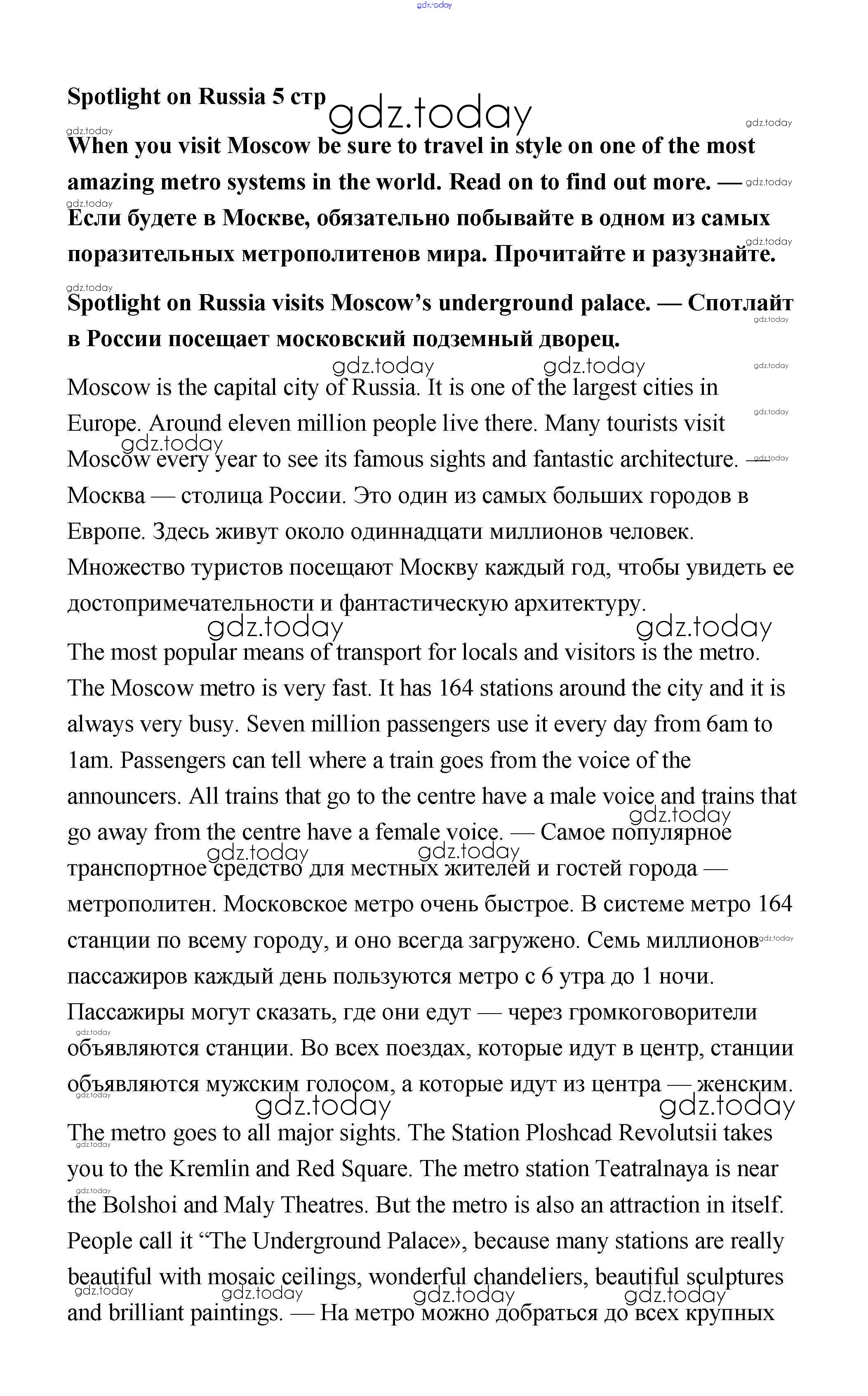 Ответы к Решение к Spotlight on Russia. Страницы 5 Учебнику по Английскому языку для 6 класса Ваулина, Дули Просвещение Spotlight 2017